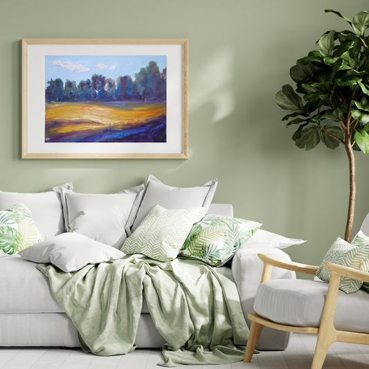 Yellow Bluefield Landscape Art – Framed Wall Decor | Modern Minimalist Painting