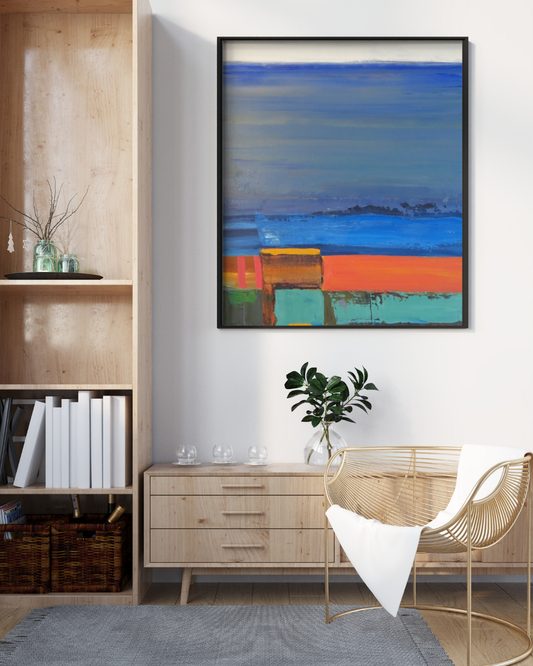 OceanSquare Modern Abstract Wall Art - Vibrant Coastal Colors for Contemporary Home Decor